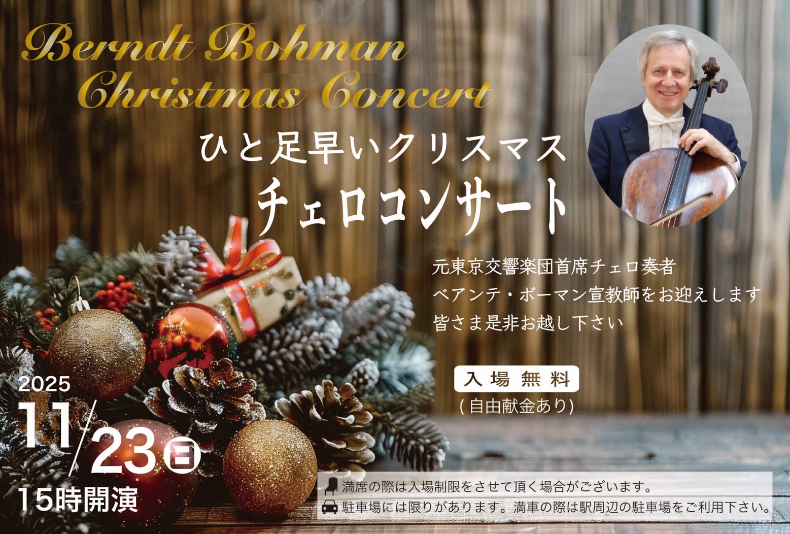 今年もシオンチャペルで元東京交響楽団首席チェリストのベアンテ・ボーマン先生をお呼びし、クリスマスコンサートができることになりました。